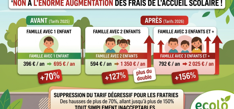 L’augmentation des frais de l’accueil scolaire: excessive et inacceptable !