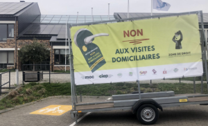 A l’entrée de la maison communale se trouve une large banderole installée par la CSC Brabant wallon. Les conseillers et les citoyens de passage sont invités à la signer.